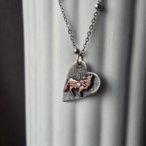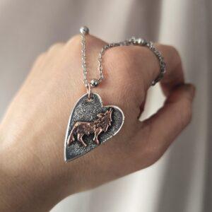 Srebrny naszyjnik z wilkiem w kształcie serca